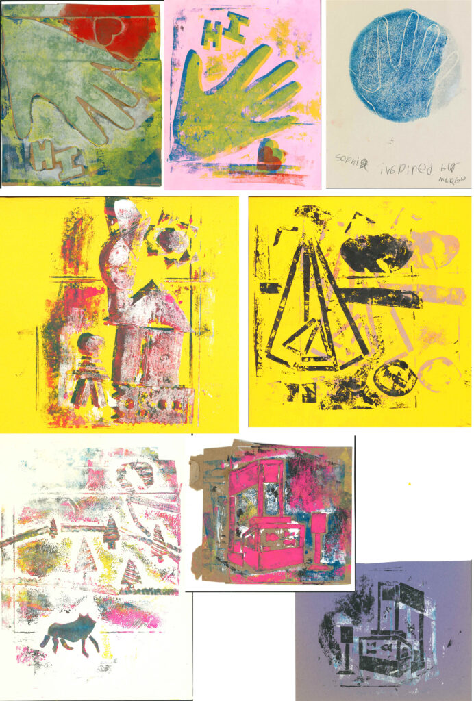 Our goal for the project is for everyone to complete enough prints that we can exchange them within the group. The prints will also be incorporated into a “junk journal” that each participant will make in the second half of the semester. The entire project is a great example of the kind of open-ended, project-based art lessons that make our Arts & Smarts programming special.